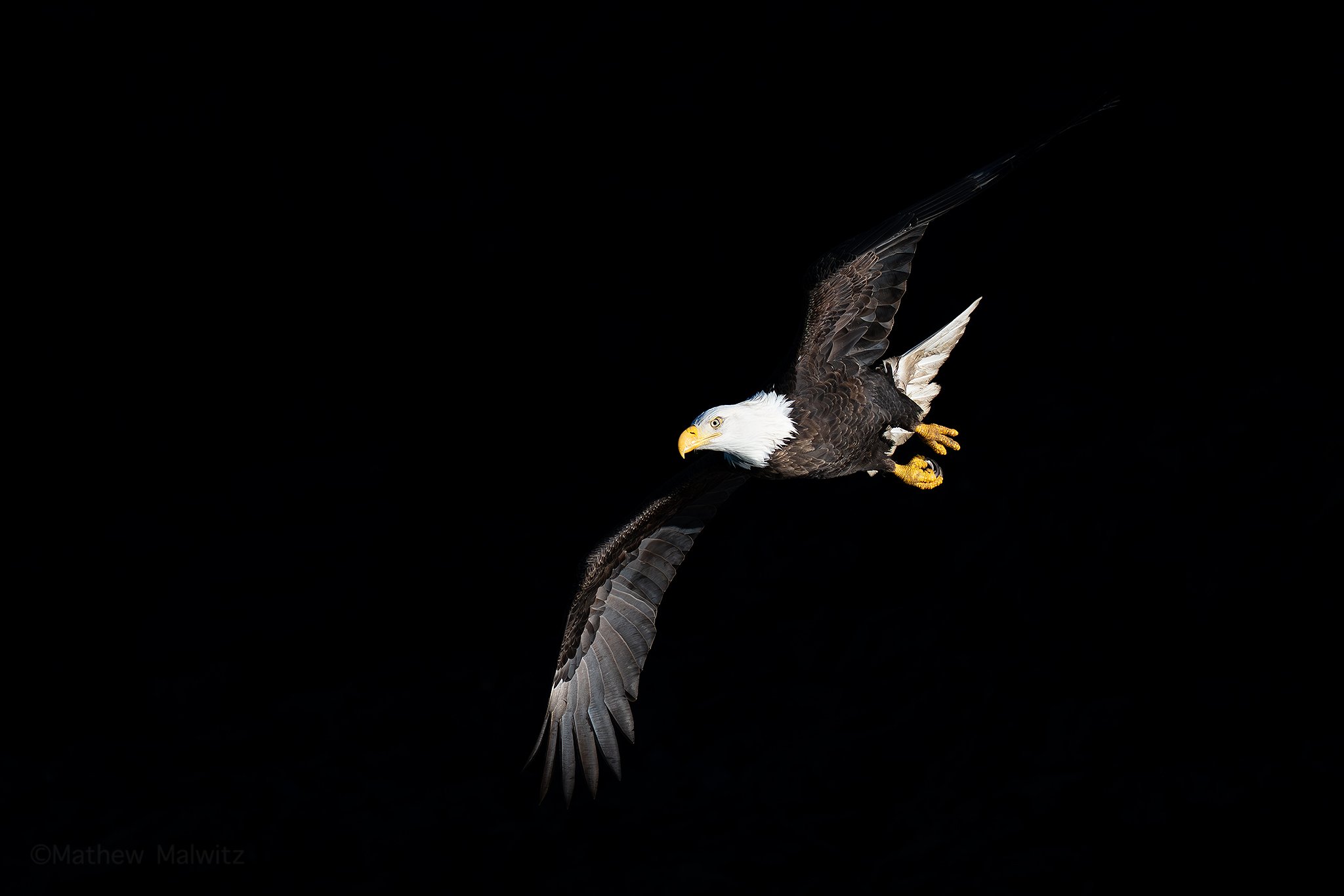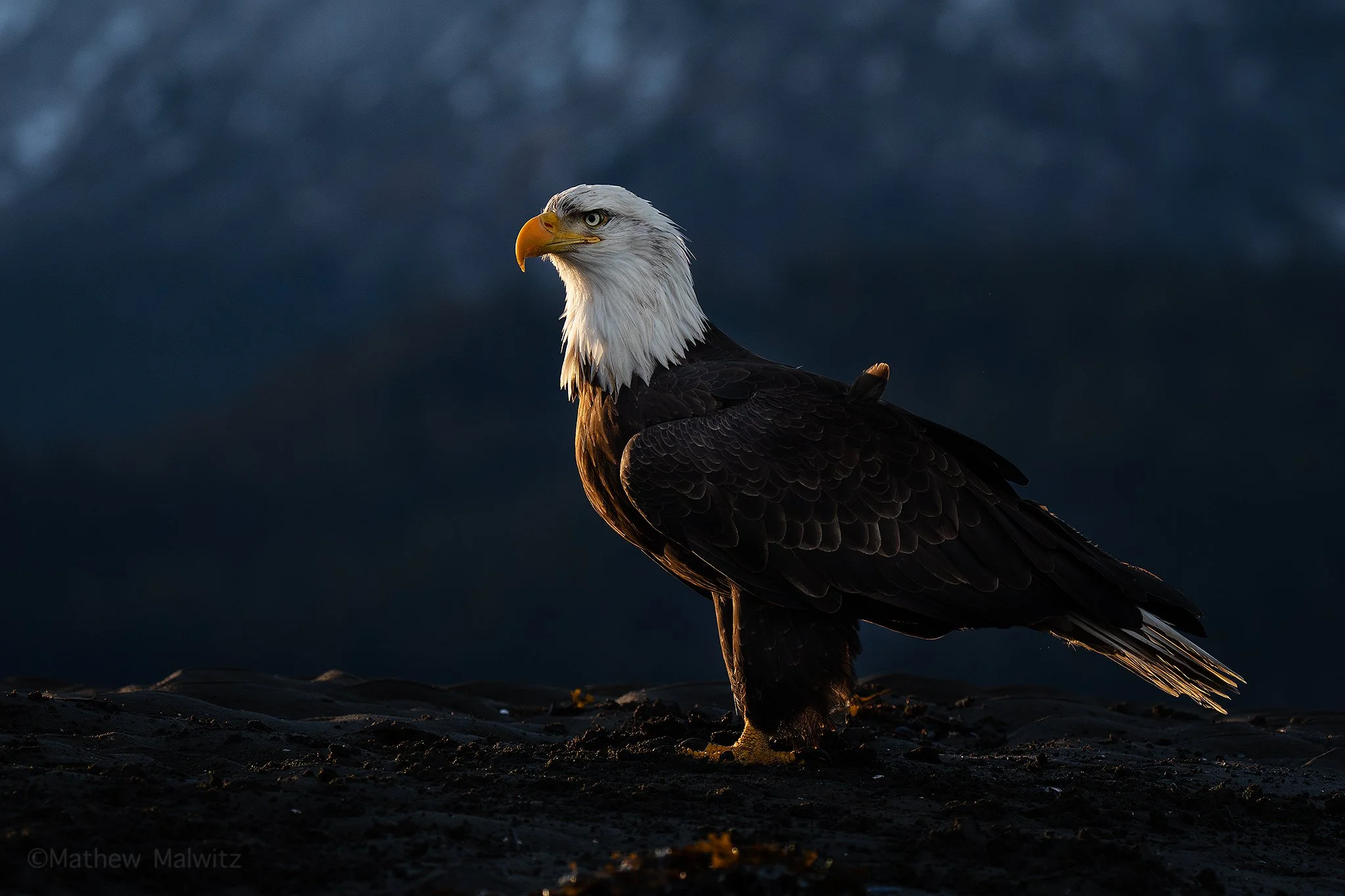 I landed and immediately felt the need to shed some layers. It wasn’t more than an hour before I saw my first eagle. It was perched on a rock just feet away from the road leaving Anchorage. As the drive went on, more and more eagles appeared until the destination was reached. From there, it was open season. Below, I’ve shared a number of my favorite images taken on my trip to Alaska. From standard portraits and flight shots, to more engaging environmental portraits as well as high and low-key images. There’s even a moose and some otters for the mammal fans out there.