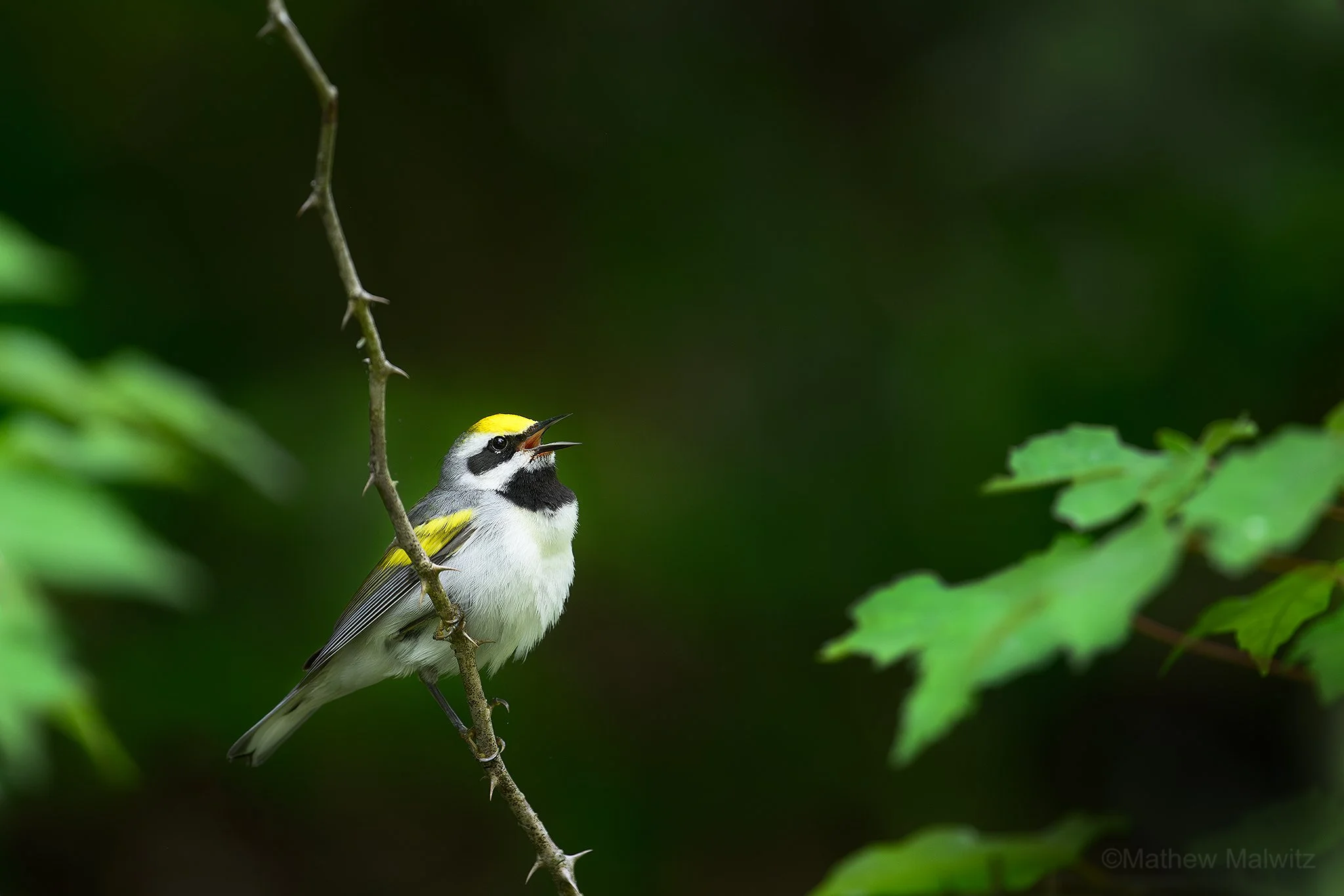 I managed to get a few shots of the first male as he investigated his romantic rival from the edges of that fir. One of my favorite features of these trees, is how they provide a darker background. Birds really pop when photographed along the edge of a coniferous branch. There are some species that are more commonly found in these trees, but Golden-wings are not a bird I generally associate with conifers. This made the situation quite special for me. Another thing I love about these trees, is their ability to naturally frame the subject. The dark background mentioned above it great for isolating your subject, but the edges of nearby branches growing into the light adds a natural frame around the bird, drawing your eyes to the subject itself.